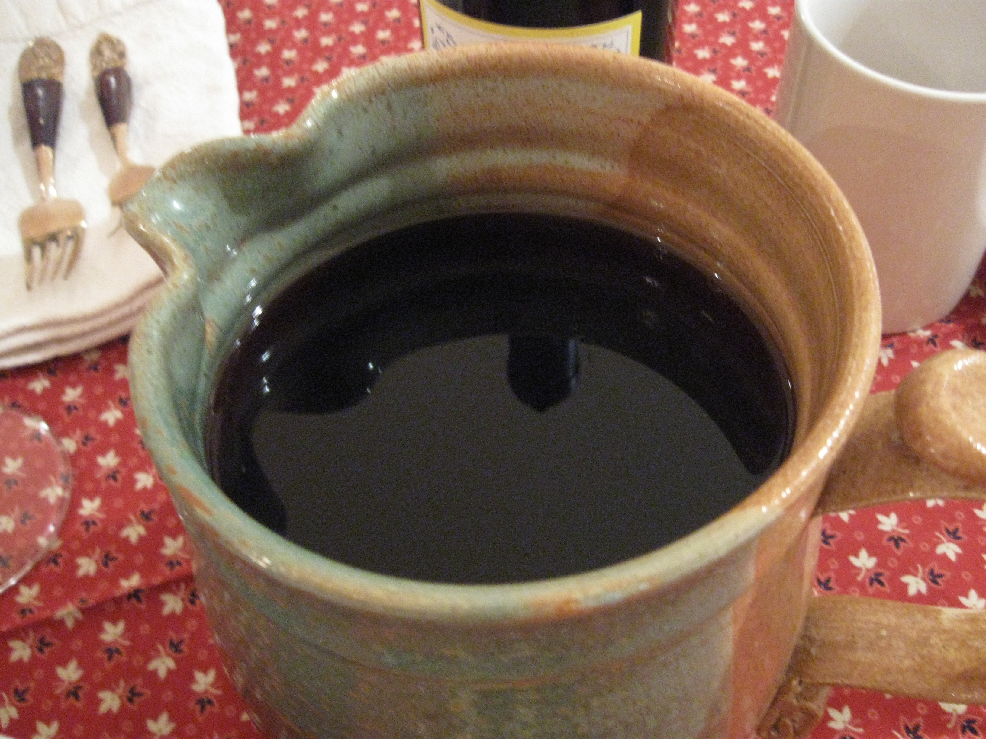 This picture of the mulled cranberry juice doesn’t do it justice. Here it just looks like cold, black coffee – ick! But the hot juice was a little sweet and was a tasty contrast to the salty turkey.