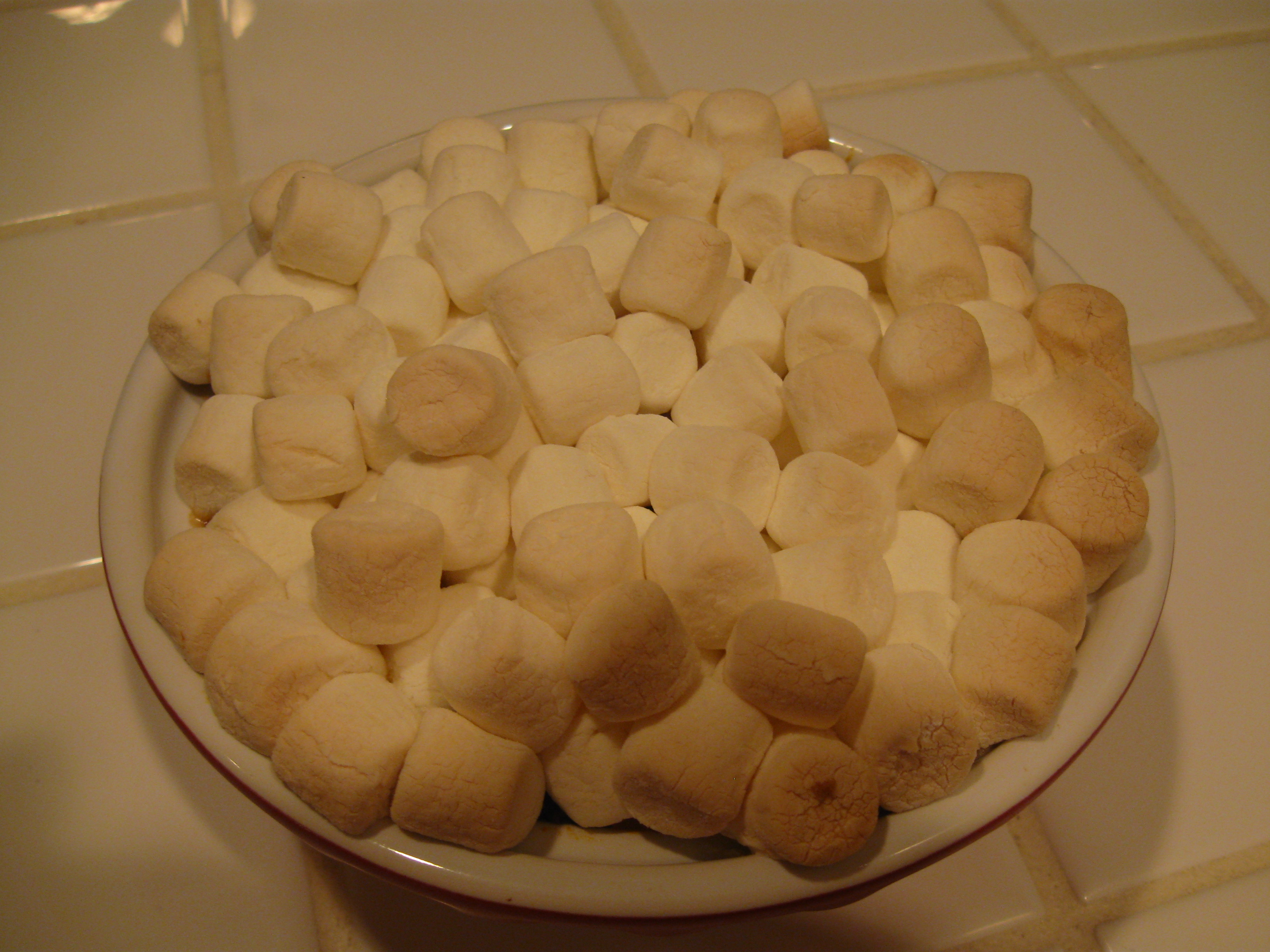 I had some extra sweet potatoes left, so I used a mini (read: single serving chicken pot pie dish) to make a very small side of sweet potato-brown sugar-marshmallow dish. The marshmallows could have used a bit more browning, but there were still very little leftovers so I’m guessing they tasted okay.