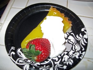 The crust is “rustic” to say the least and the filling was a bit runnier that I had liked. The candied oranges weren’t quite as candied as I wanted, (although Joel was surprised to find that he could eat the orange rind and all and he was quite pleased with the taste.)