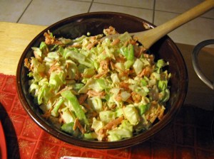 Combine cabbage, carrots and mayonnaise in a large bowl and mix well. Salt and pepper liberally before serving.